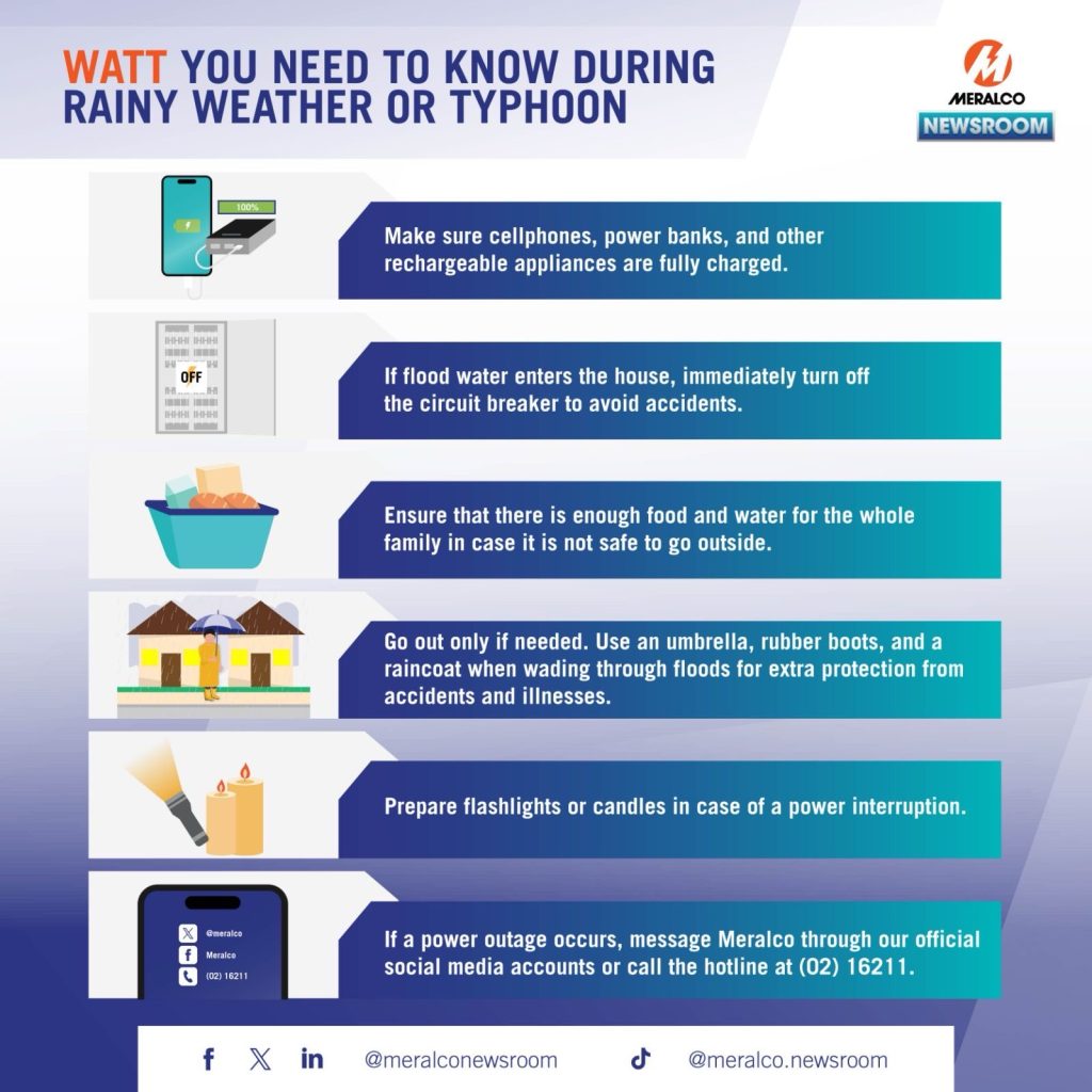 As the rainy season continues, Meralco is also reminding customers to prioritize electrical safety, especially in flood-prone areas.