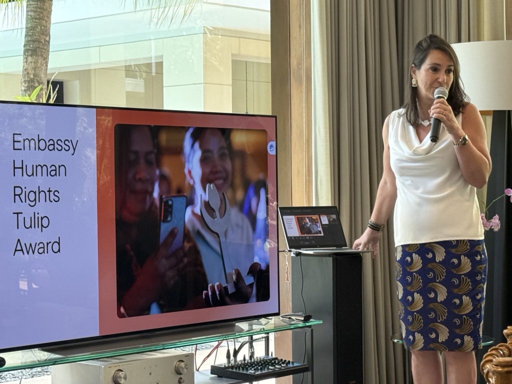 She highlighted the embassy’s participation in the global campaign to end violence against women and the annual Human Rights Award, which recognizes outstanding civil society organizations. Last year’s Tulip Award, advocates for the rights of indigenous women. The next honoree will be announced on December 10, International Human Rights Day.