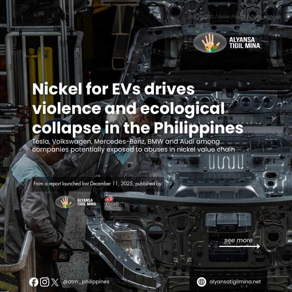 Published with Filipino environmental group Alyansa Tigil Mina (ATM), the report traces nickel ore from mining operations in Cantilan, Surigao del Sur, to major Chinese metal traders that supply battery and stainless-steel producers serving some of the world’s largest automakers.